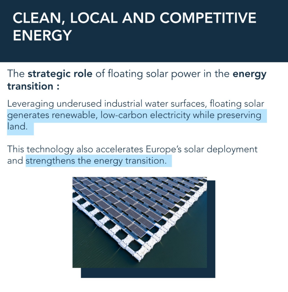 Ce projet ambitieux vise à démontrer le rôle stratégique du solaire flottant dans la transition énergétique en utilisant les surfaces d’eau industrielles pour produire une énergie propre, locale et compétitive.